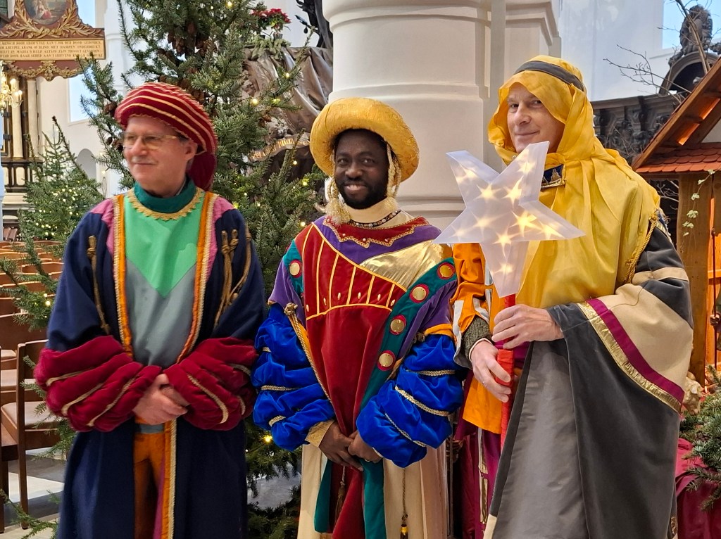 Voorganger Koen Vanhoutte verwees in zijn homilie naar de betekenis van deze dag van de ‘Openbaring’: de geboorte van Jezus werd hier wereldwijd verkondigd, want de ‘wijzen uit het oosten’ vertegenwoordigen de verschillende continenten. In de figuur van Caspar zag hij de vertegenwoordiging van de vele medewerkers van Afrikaanse en andere origine in onze kerken.